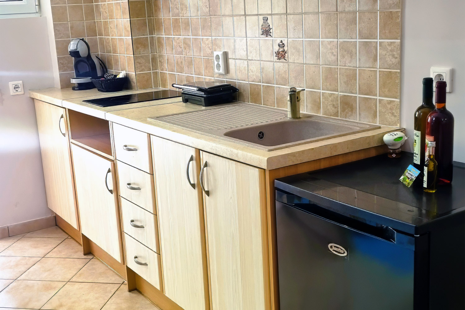 Studio 1 offers a fully equipped kitchen, ideal for guests who prefer to prepare their own meals during their stay.
