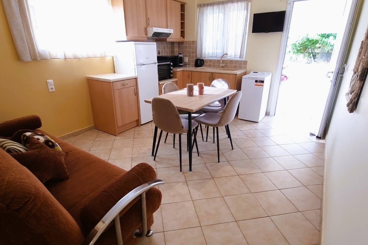 Apartment 2 at Marathon Studios & Apartments is a spacious, fully equipped apartment, ideal for families or small groups who want extra comfort and a home‑like feeling during their stay in Limni Keri, Zakynthos.